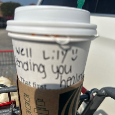 When my daughter was very sick she went to the grocery store and purchased tea, soup & crackers, throat lozenges, ginger ale, a little flower bouquet, and even got her a medicine ball tea from Starbucks on her way to deliver. My daughter loved it!